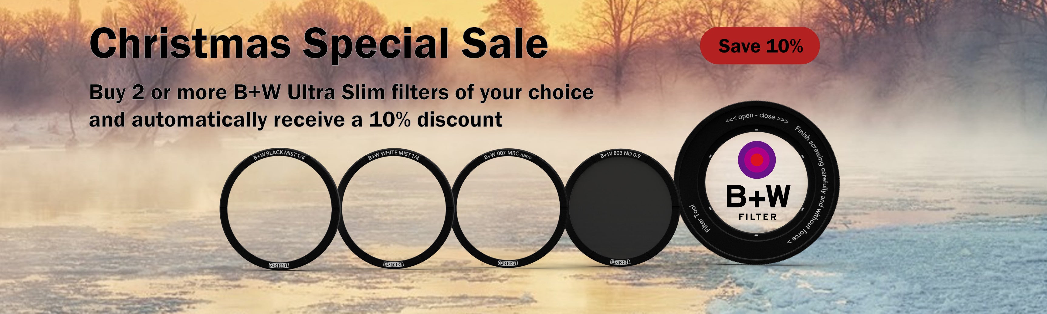 The B+W Ultra Slim Filter allows you to use the macro mode with the original lens hood. With the mounting aid, the ultra slim filter is very easy to handle.
