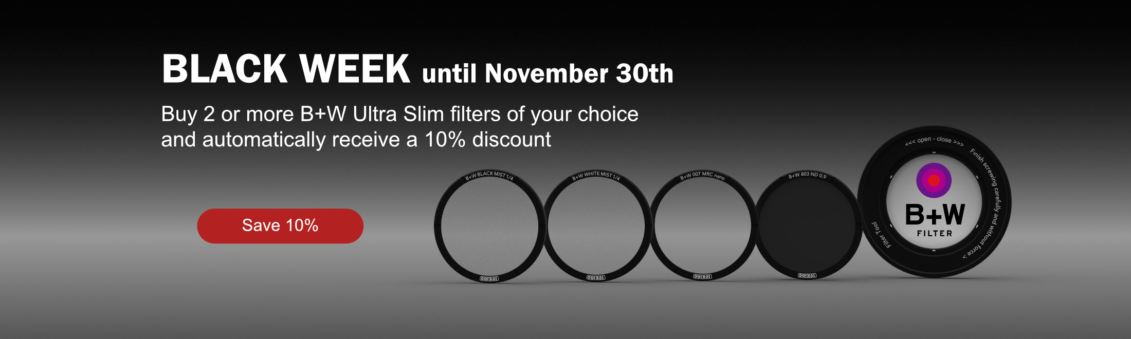 The B+W Ultra Slim Filter allows you to use the macro mode with the original lens hood. With the mounting aid, the ultra slim filter is very easy to handle.